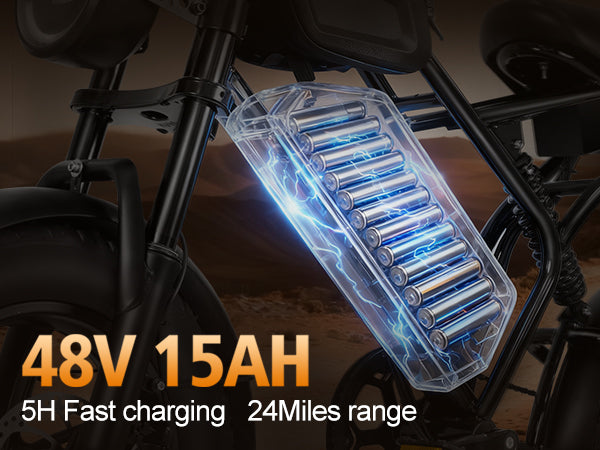The DK400 e-bike is equipped with a powerful 48V 15Ah battery that can be fully charged in only 5 hours and can travel as far as 24-30 Miles on a single charge. Experience the thrill of the ride, conquer city streets, and embrace endless exploration.