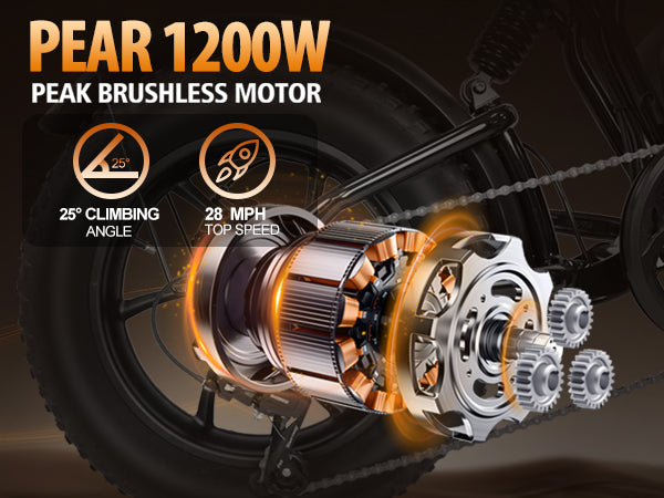 The 1200W upgraded brushless geared hub motor features a high-temperature resistant inner ring for improved heat dissipation, ensuring longer motor life. It’s designed to handle tough terrains with ease. The FOC (Field-Oriented Control) system optimizes motor performance in real-time, adjusting to your riding conditions and inputs, while monitoring ebike diagnostics for a smoother experience.