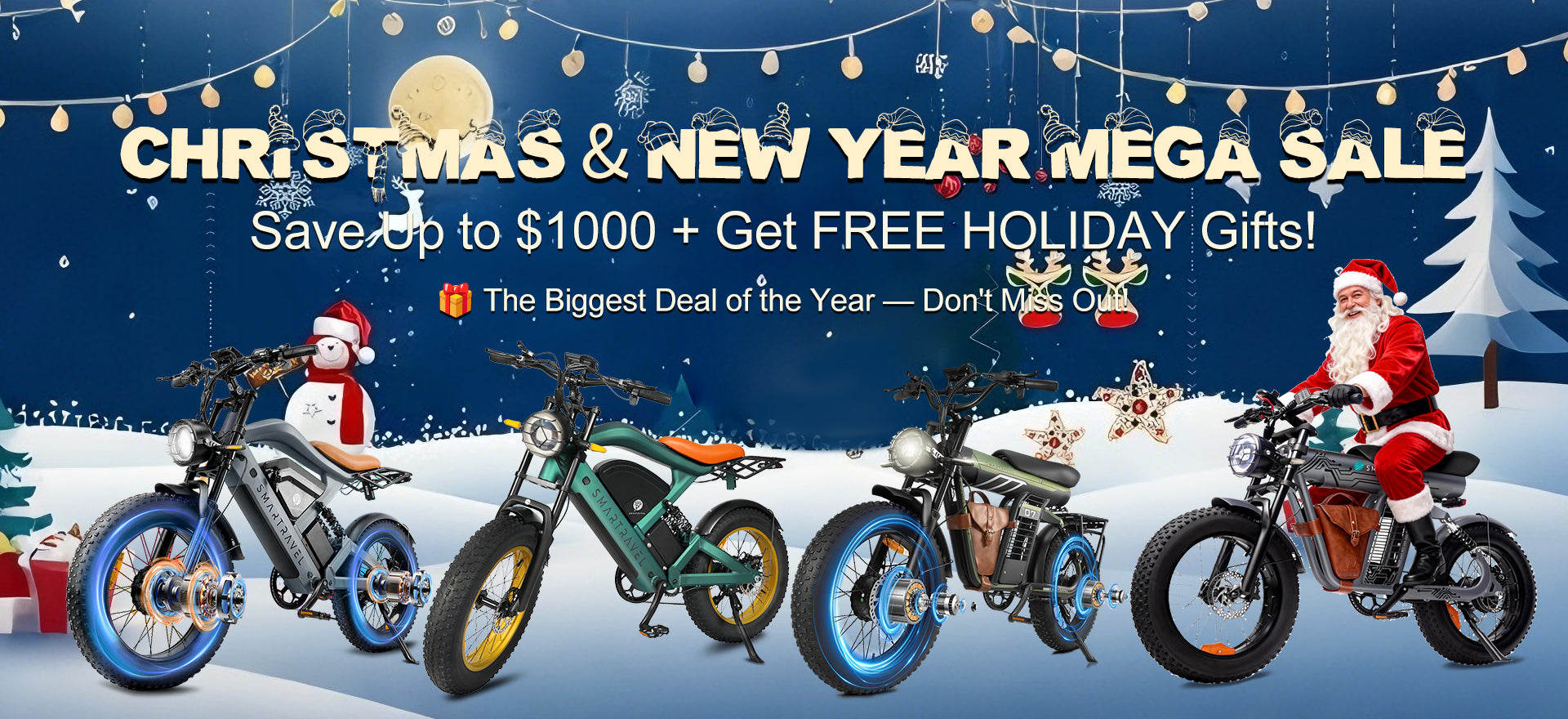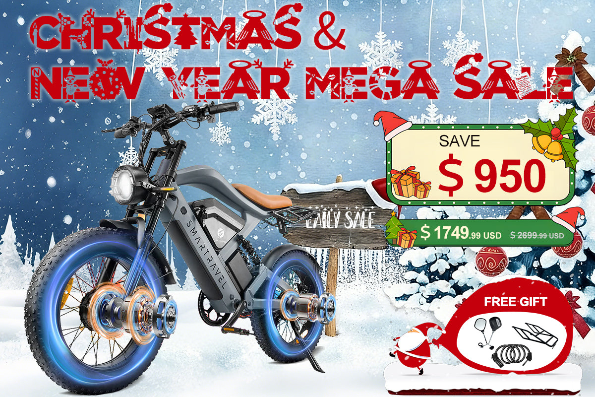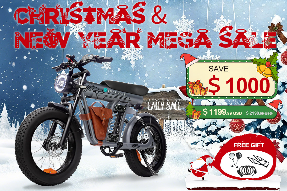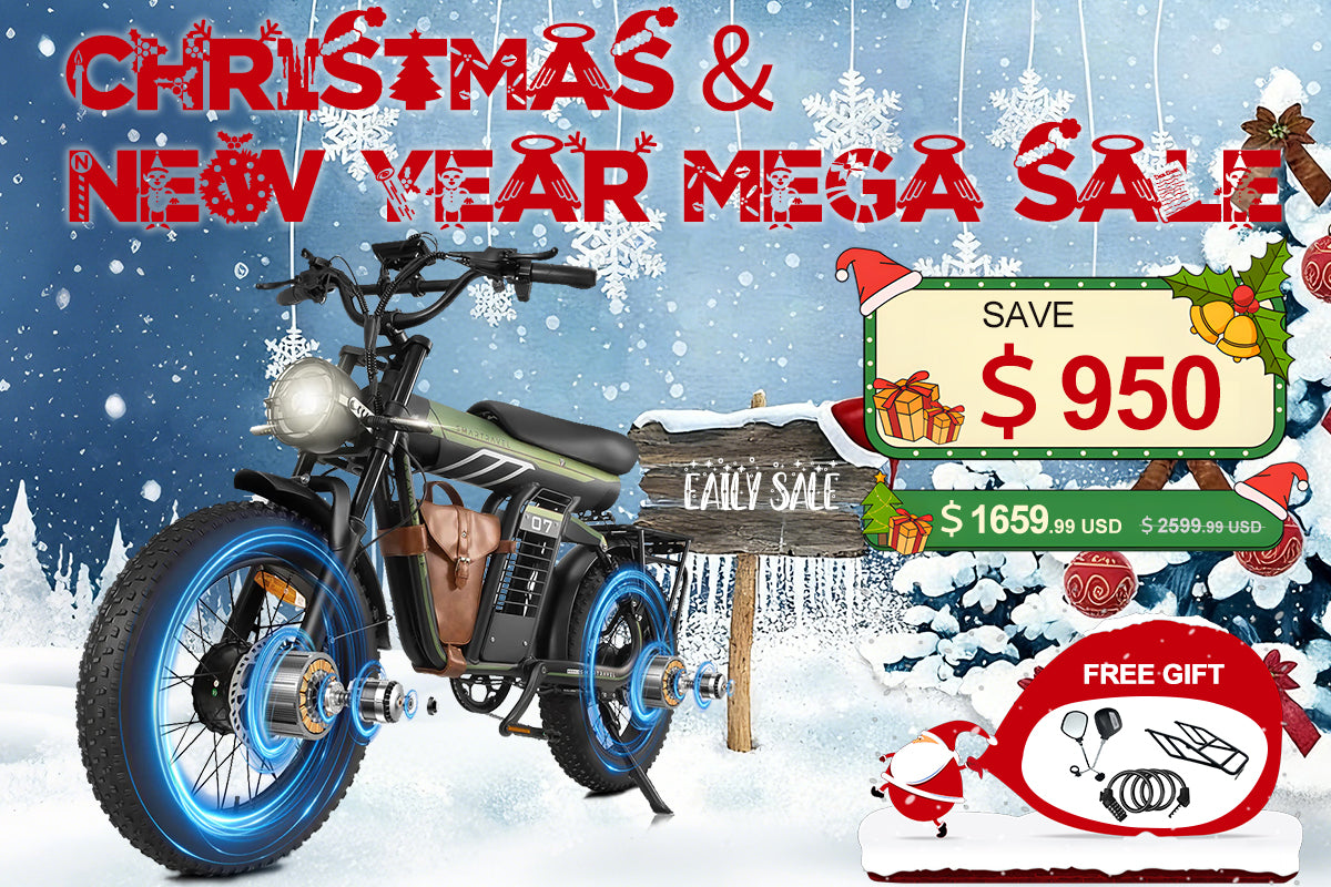 Enjoy special holiday savings on your ride —buy 2 e-bikes and get $50 off, plus receivefree gifts! Order now to have your e-bikes deliveredbefore Christmasand make your holiday riding experience safe and joyful!