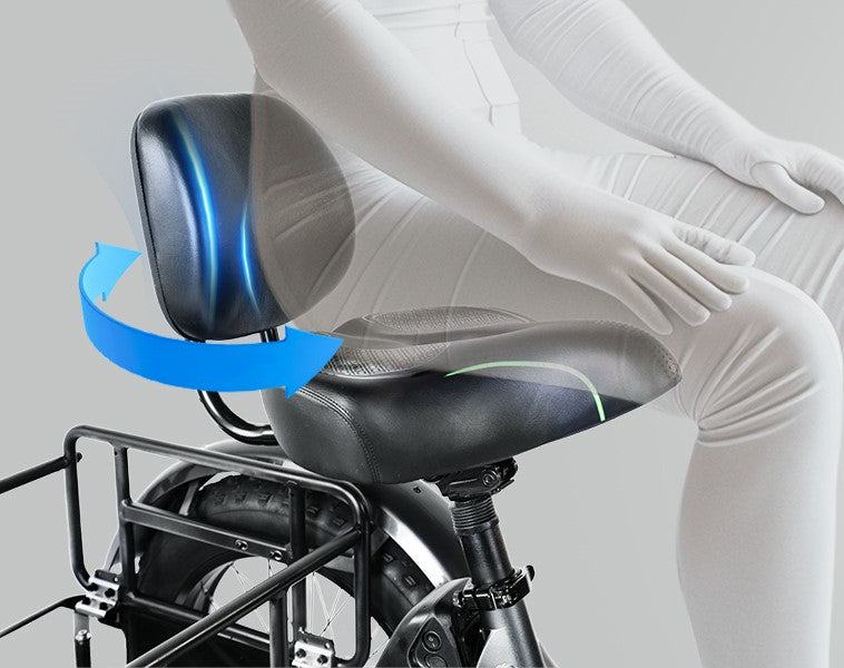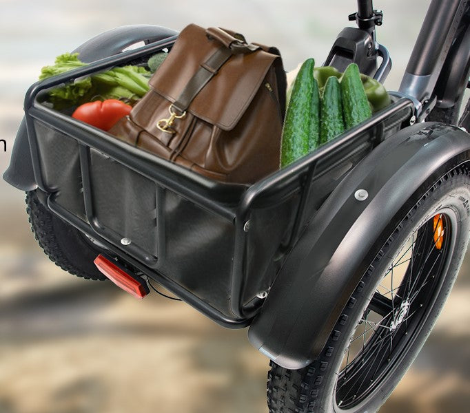 Equipped with a robust rear motor, dual batteries, and a large rear rack, this electric tricycle provides extended range and ample power to transport everything from daily essentials to gear for weekend getaways. Perfect for urban commuting and carrying family cargo.